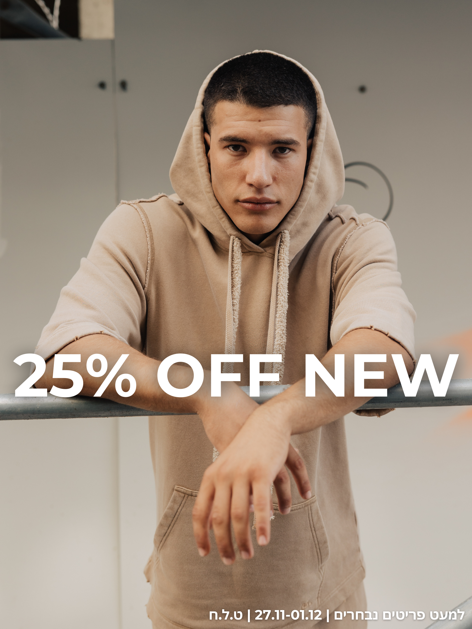 25% הנחה על קולקציות חדשות + 25% אקסטרה על עונות קודמות לסופש בלבד !