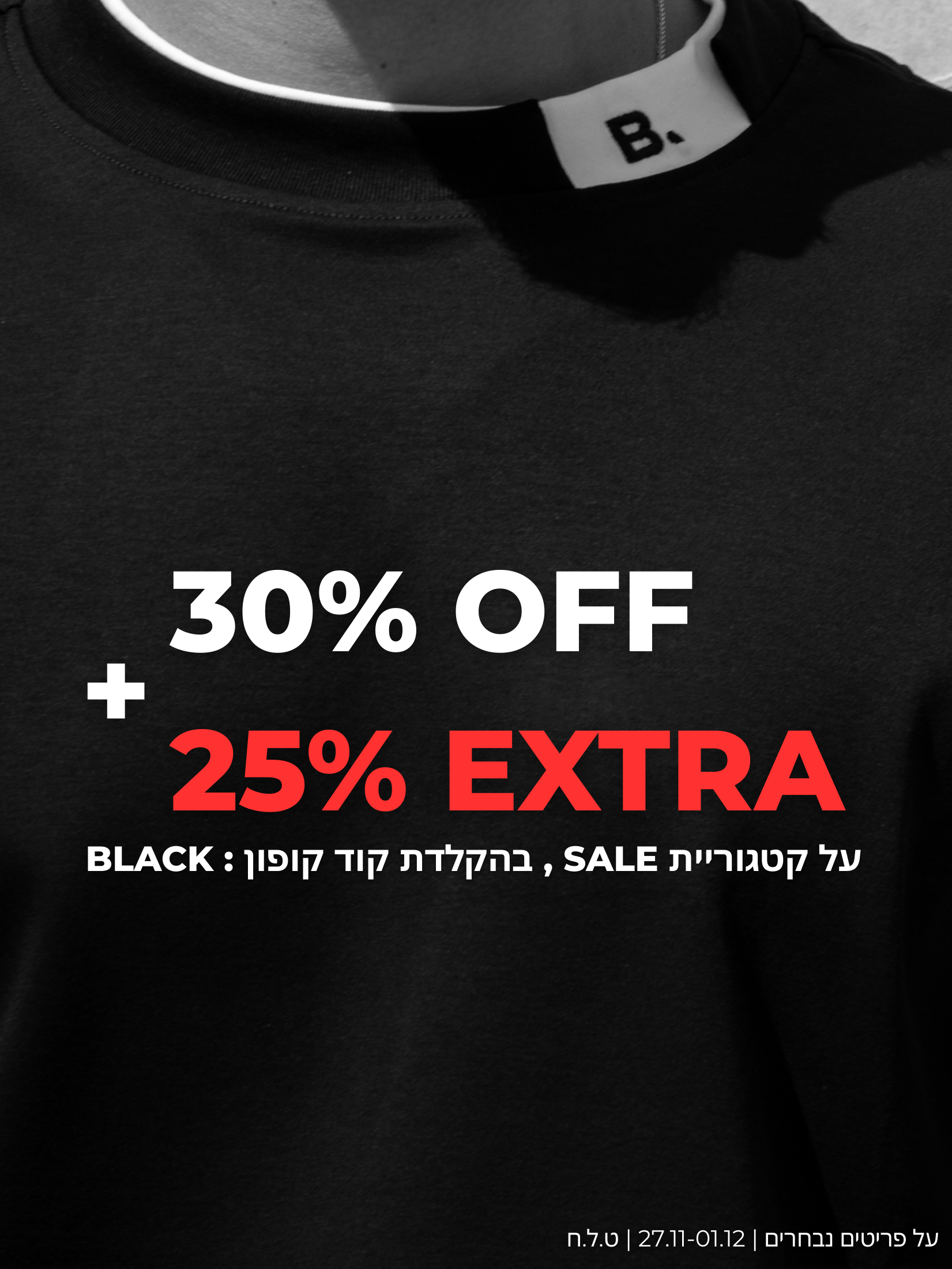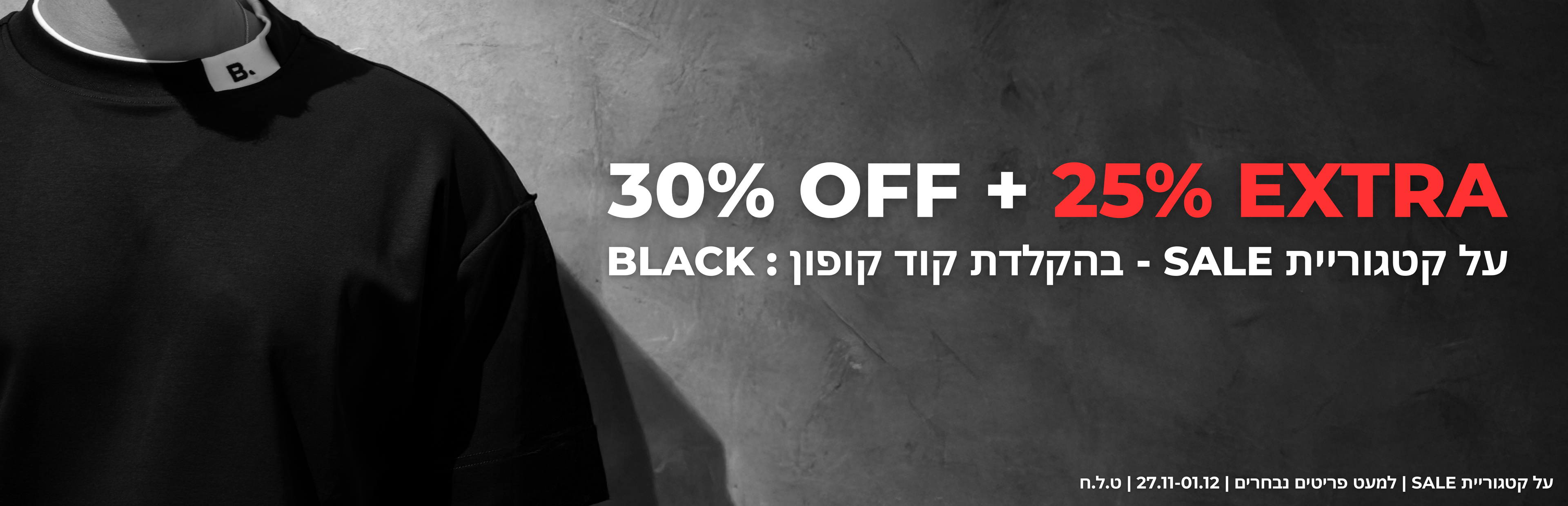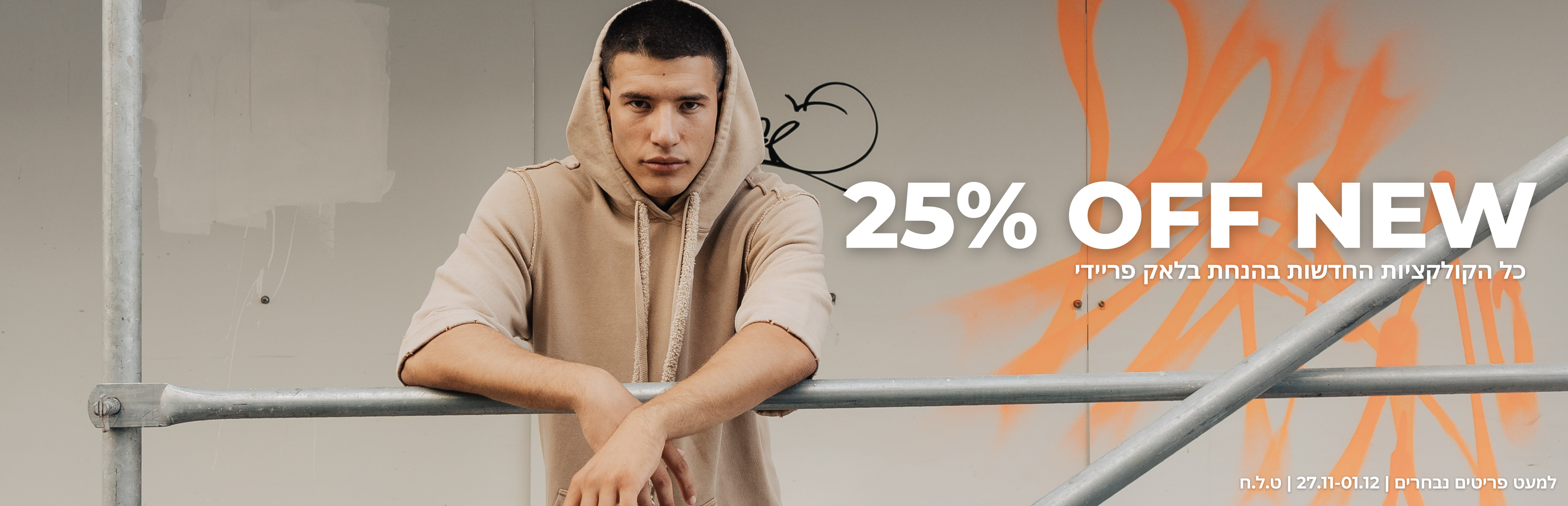 25% הנחה על קולקציות חדשות + 25% אקסטרה על עונות קודמות לסופש בלבד !